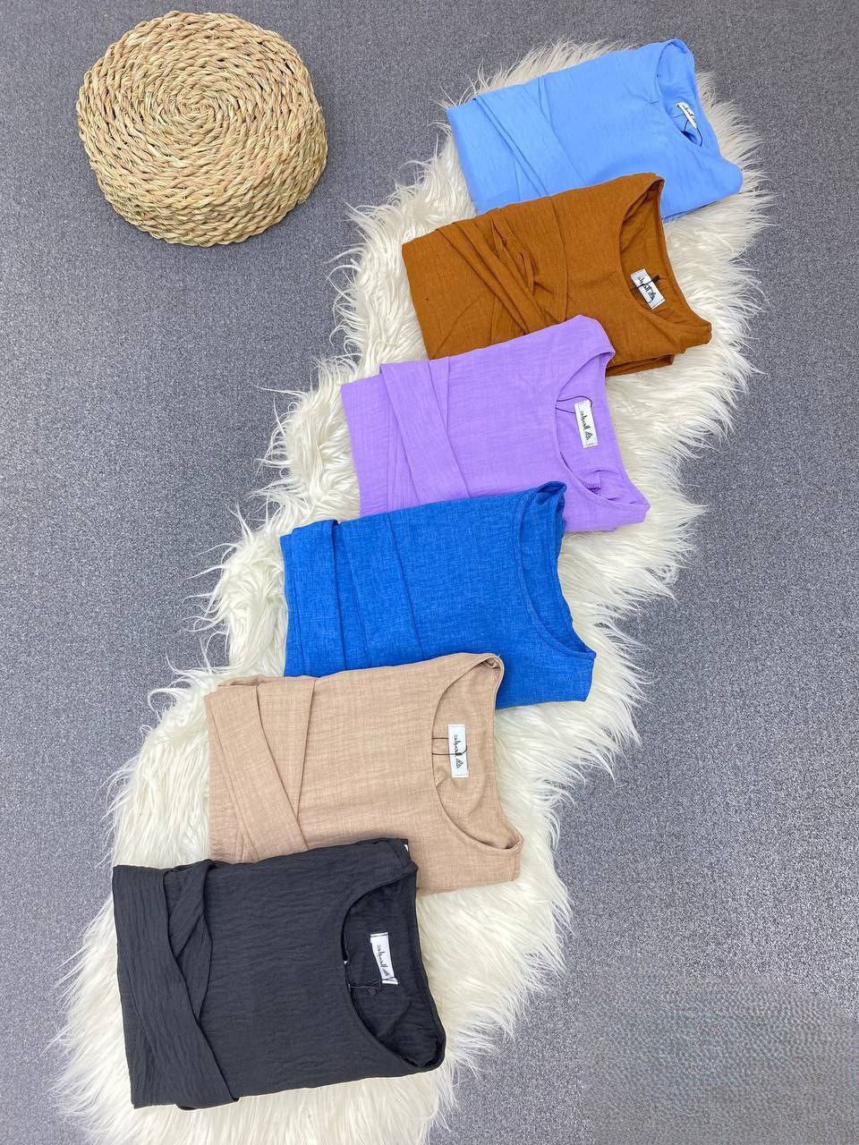 مصنوع من خامة كتان إسباني مستورد عالية الجودة، خفيفة وناعمة على البشرة وبتدي إحساس بالراحة طول اليوم.