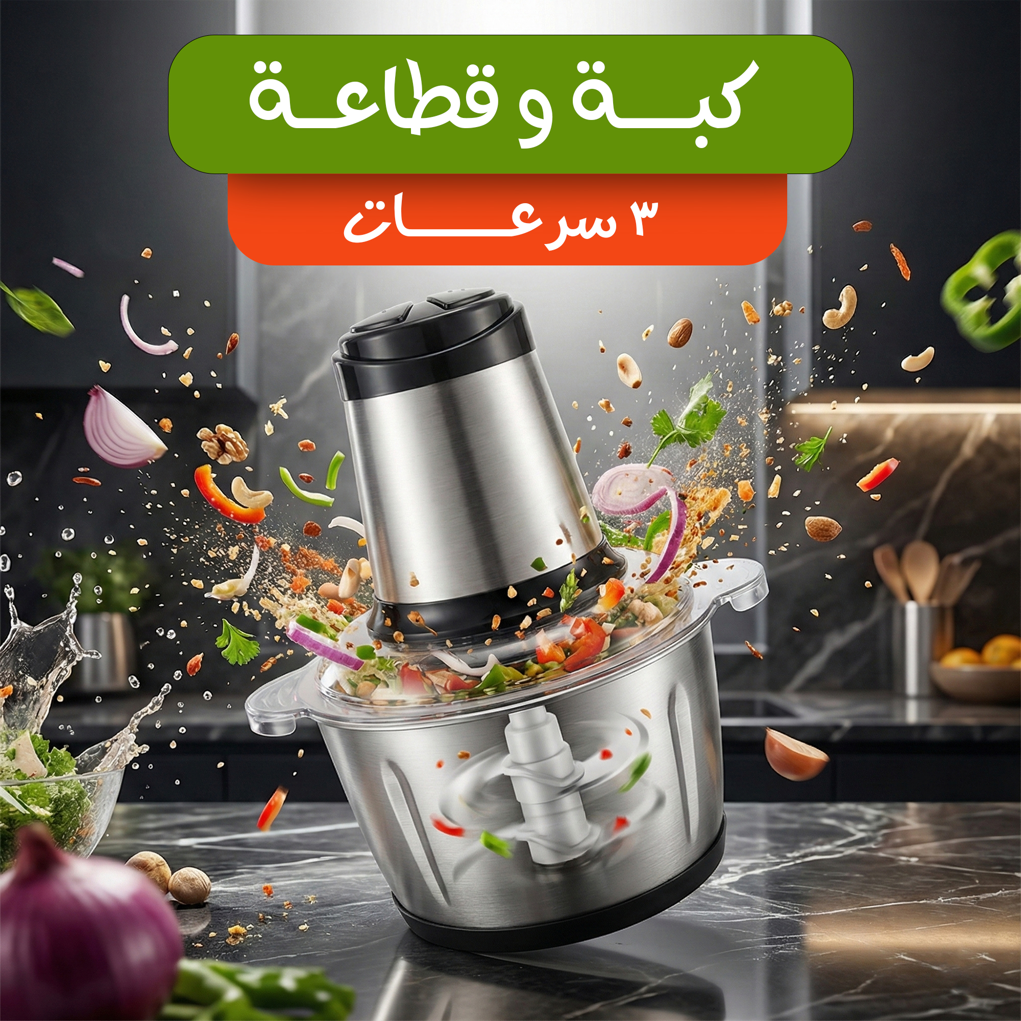 خلّي تجهيزات مطبخك أسرع وأسهل مع كبة/مفرمة ستانلس 2 لتر بتصميم شفرات 4D يفرم ويطحن بالتساوي من كل الزوايا. مناسبة لفرم الخضار، الأعشاب، البصل، الثوم وحتى اللحوم بكفاءة، ومع سرعتين تقدر تختار بين فرم سريع أو طحن أخف حسب احتياجك. الوعاء ستانلس صحي للاستخدام اليومي، والأجزاء قابلة للفك لسهولة التنظيف. كمان فيها حماية من ارتفاع الحرارة لتشغيل آمن.
