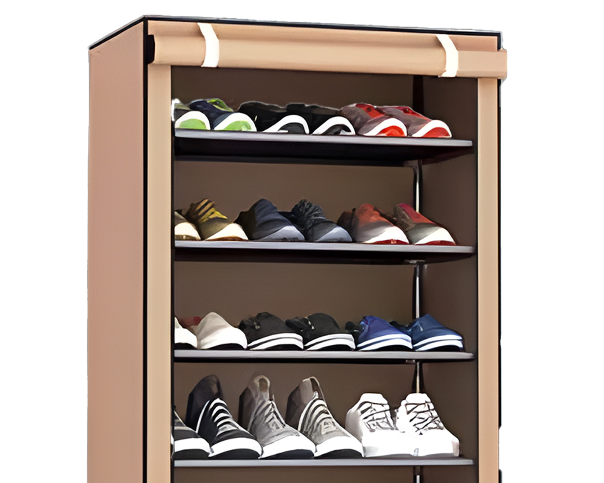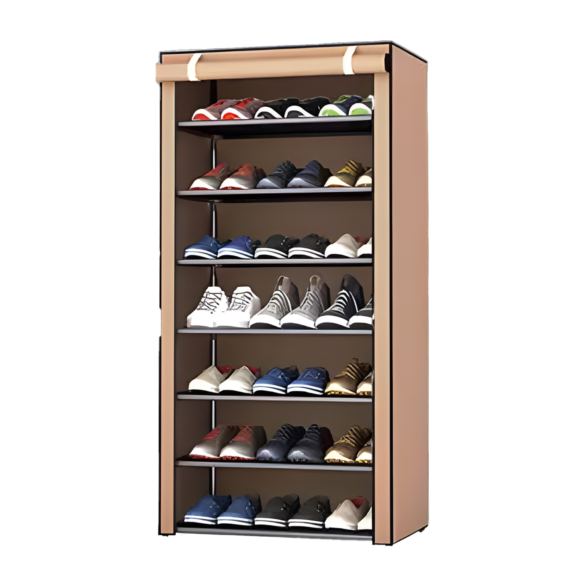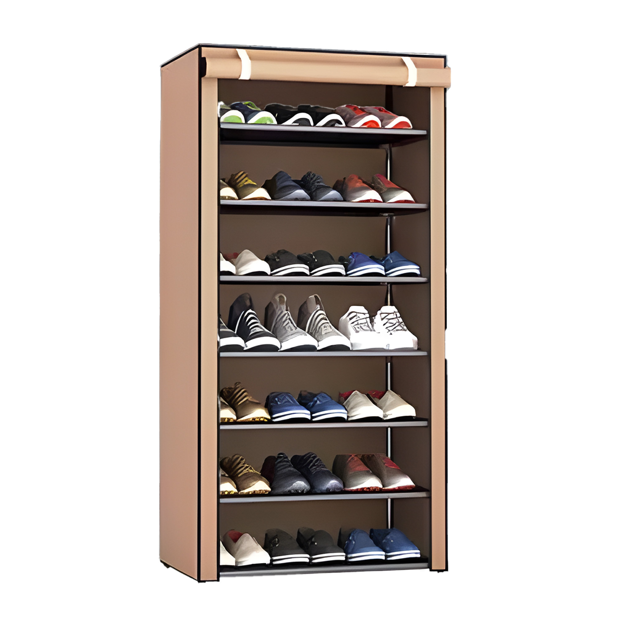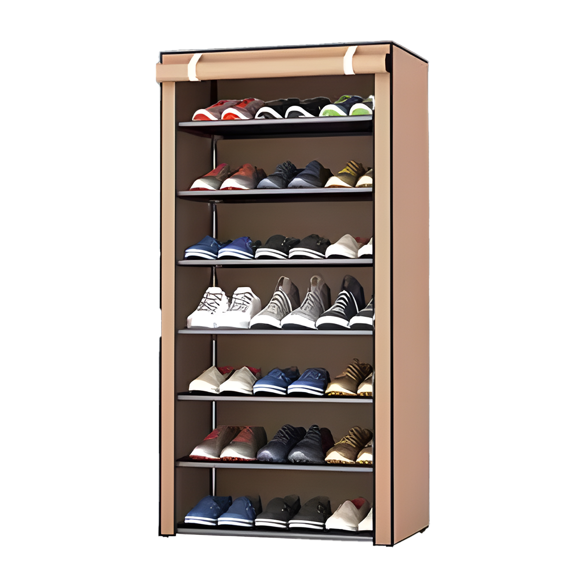 جزامة 7 دور بهيكل معدني قوي لتوفير مساحة وتنظيم الأحذية بشكل مرتب وشيك. تصميم عملي يناسب البيوت الصغيرة ويشيل أحذية للكبار والأطفال، مع غطاء قماشي أنيق يحافظ على الأحذية من التراب والرطوبة ويخلي المكان شكله مرتب. الأرفف قوية وتستحمل الاستخدام اليومي والأحذية الثقيلة، وباب رول سهل الفتح والغلق لسهولة الوصول مع الحفاظ على النظافة