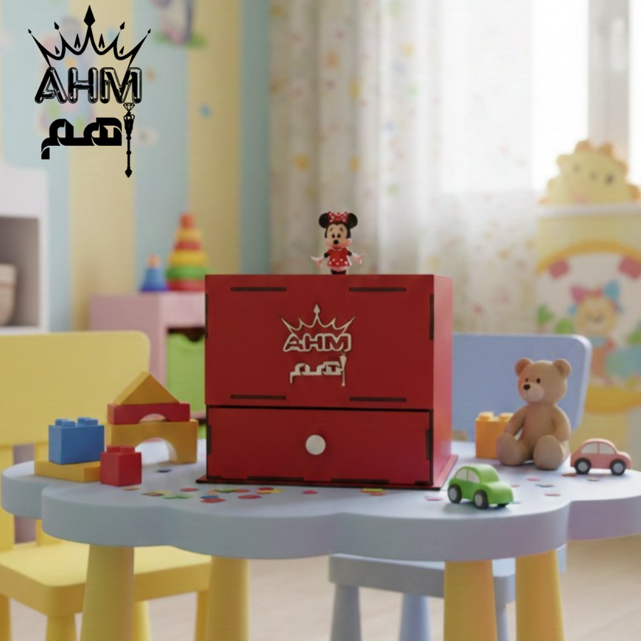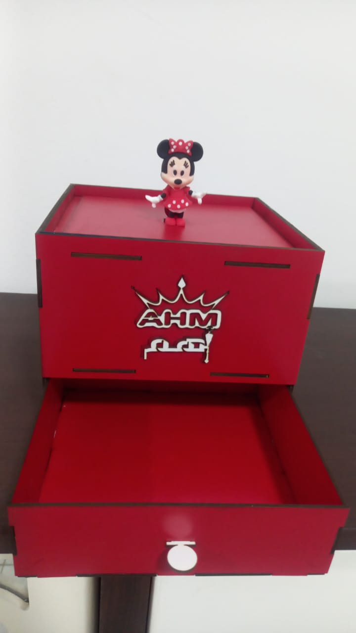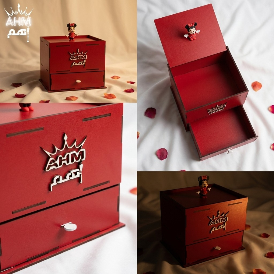 يا هلا بكل ملكة صغنونة 👸 جالك البوكس اللي هيخليكي "فاشونيستا" العيلة. Minnie Queen Box هو المخبأ السحري لكل كنوزك وإكسسواراتك، مصنوع يدوياً بحب من الخشب الطبيعي المتين بلون أحمر ملكي يخطف العين.