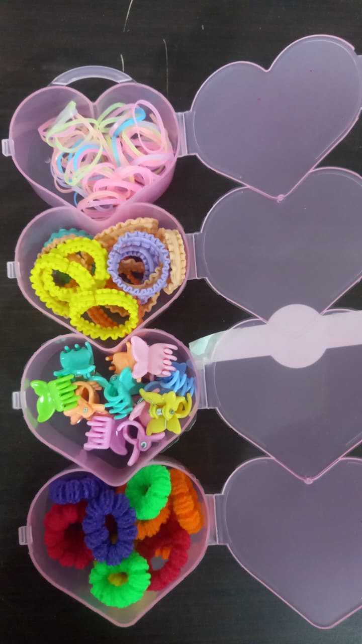 🌈 منظم القلوب الملون: علبة قلب مليانة استيك بألوان قوس قزح المبهجة.