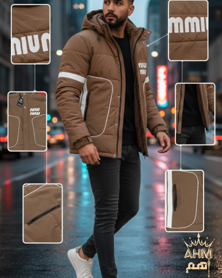قصة عصرية (Slim/Regular Fit) تظبط على الجسم. طباعة "miumiu" مميزة على الصدر والظهر بجودة عالية لا تتأثر بالغسيل. سوستة قوية + كباسين لغلق محكم. جيوب جانبية واسعة بتصميم شيك وعملي. كابتشو (غطاء رأس) لتدفئة كاملة.