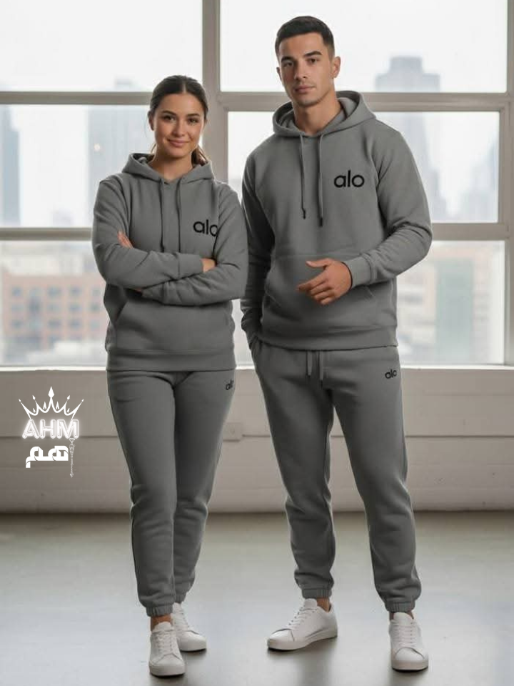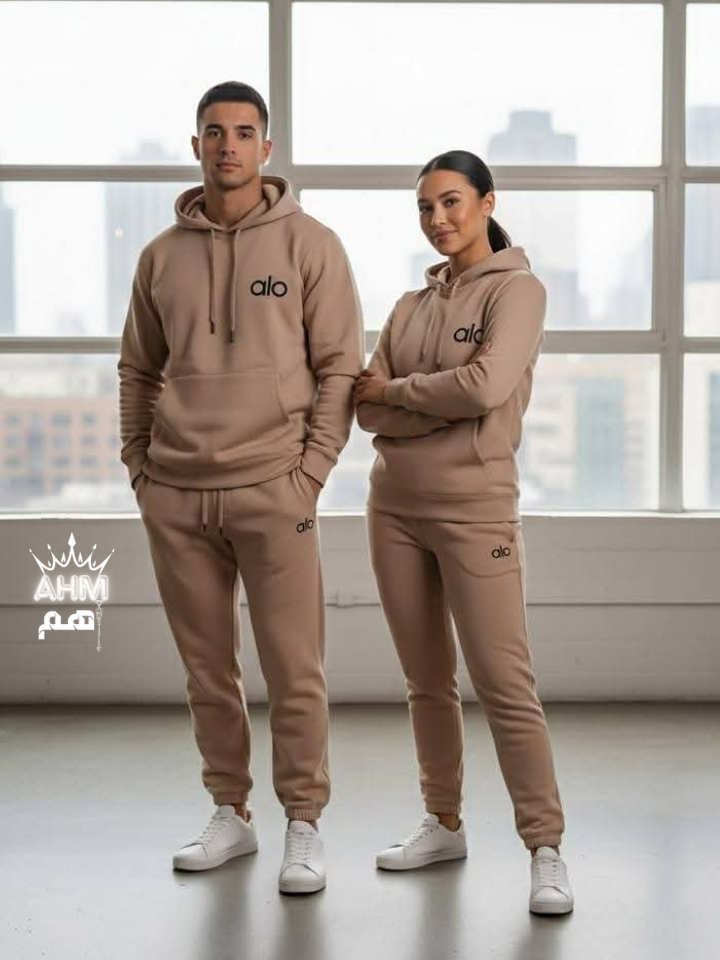 لعشاق الاستايل الرياضي الهادي والبراندات العالمية، وفرنا لكم موديل "alo" الجديد. طقم (قطعتين) بيجمع بين الراحة والشياكة، وبقصة Unisex تناسب الشباب والبنات، يعني ده أنسب وقت تعملوا "ماتشينج" سوا بألوان هادية ومريحة للعين!