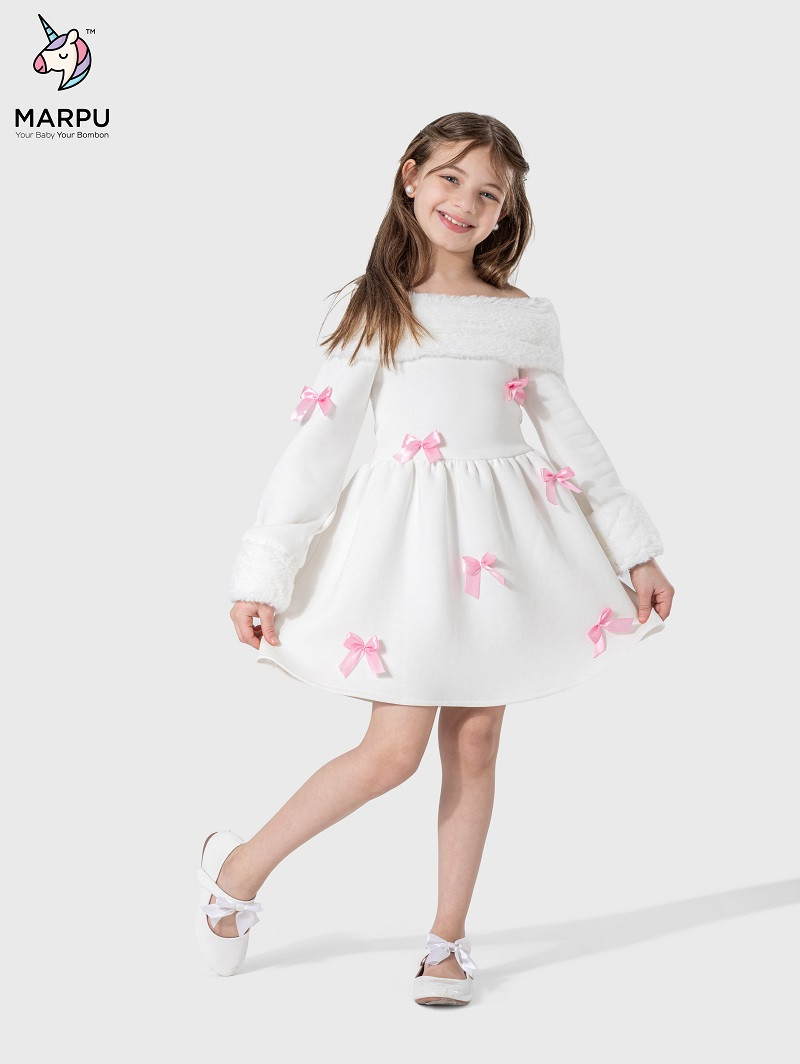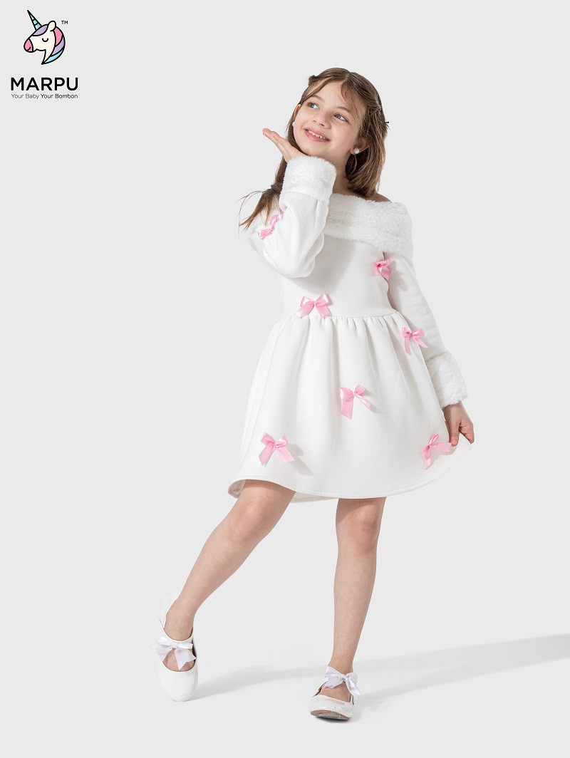 فستان كاجوال قطعة واحدة بخامة ميلتون مع فرو أرنب ناعم، تصميم مميز يجمع بين الدفء والأناقة في نفس الوقت.