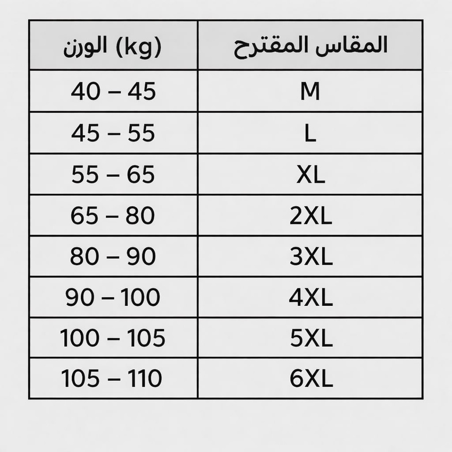 المقاسات: مقاسات مظبوطة تناسب أغلب الأجسام