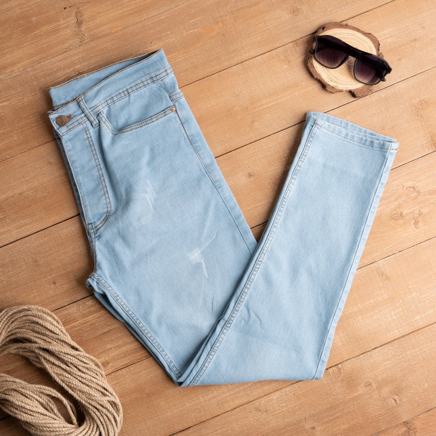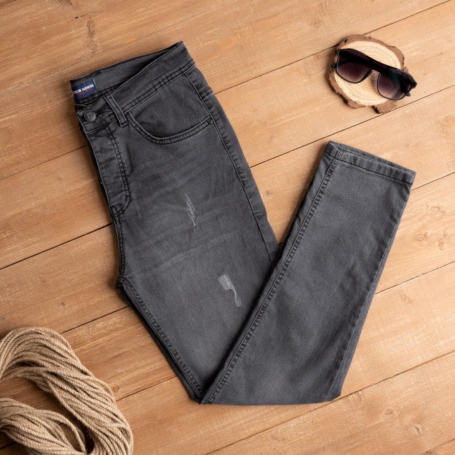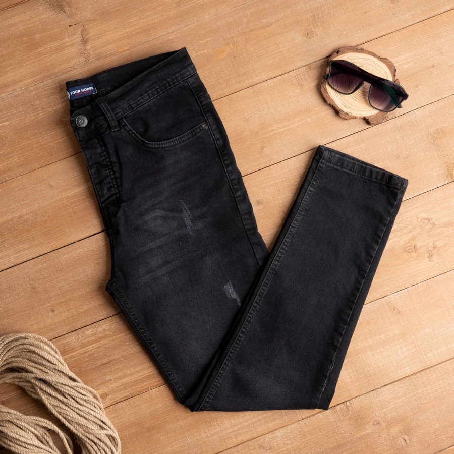 بنطلون جينز رجالي مخربش بتصميم عصري وجذاب، مناسب لستايل الكاجوال اليومي ويضيف لمسة جرأة وأناقة لأي لوك.