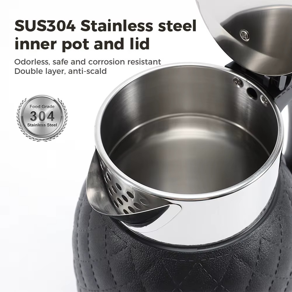 الجسم الخارجي مغطى ببلاستيك عالي الجودة مع لمسة جلد أنيقة، والجزء الداخلي من ستانلس ستيل مقاوم للصدأ لضمان النظافة وطول العمر.
