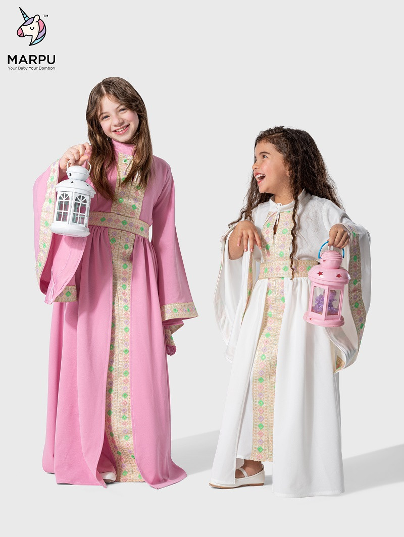 قفطان رمضان قطعتين C20D4 :قفطان رمضان قطعتين (قفطان + اكستنشن) بخامة اسكوبا، مزوّد بتطريز ملون في المنتصف وعلى الأكمام الواسع. متوفر باللون البينك والأبيض.