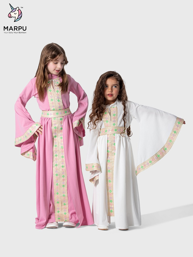 قفطان رمضان قطعتين C20D4 :قفطان رمضان قطعتين (قفطان + اكستنشن) بخامة اسكوبا، مزوّد بتطريز ملون في المنتصف وعلى الأكمام الواسع. متوفر باللون البينك والأبيض.