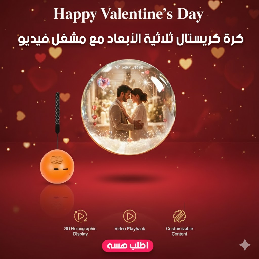 كرة كريستال ذكية تعرض فيديوهات وصورك بصيغة ثلاثية الأبعاد داخل كرة شفافة فاخرة، وياها صوت، وبطارية، وتصميم يجنّن. مثالية للهدايا والمناسبات الخاصة 🎁✨