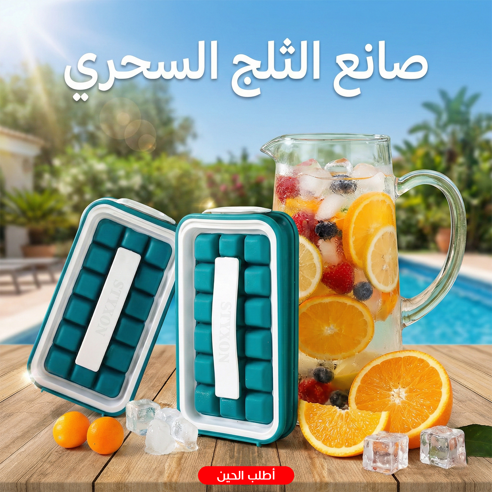 صانع الثلج السحري هو حل عملي وسريع لعمل مكعبات ثلج بدون فوضى ولا تكسير قالب. تعبّي بالماء، تقفل الغطاء بإحكام، وبعد التجميد تقلب/تضغط بسهولة فتطلع المكعبات مباشرة بفضل السيليكون المرن. مناسب للعصائر، القهوة الباردة، الرحلات والطلعات، وحتى للثلاجات الصغيرة لأنه يجمع صناعة الثلج وحفظه في نفس العلبة.